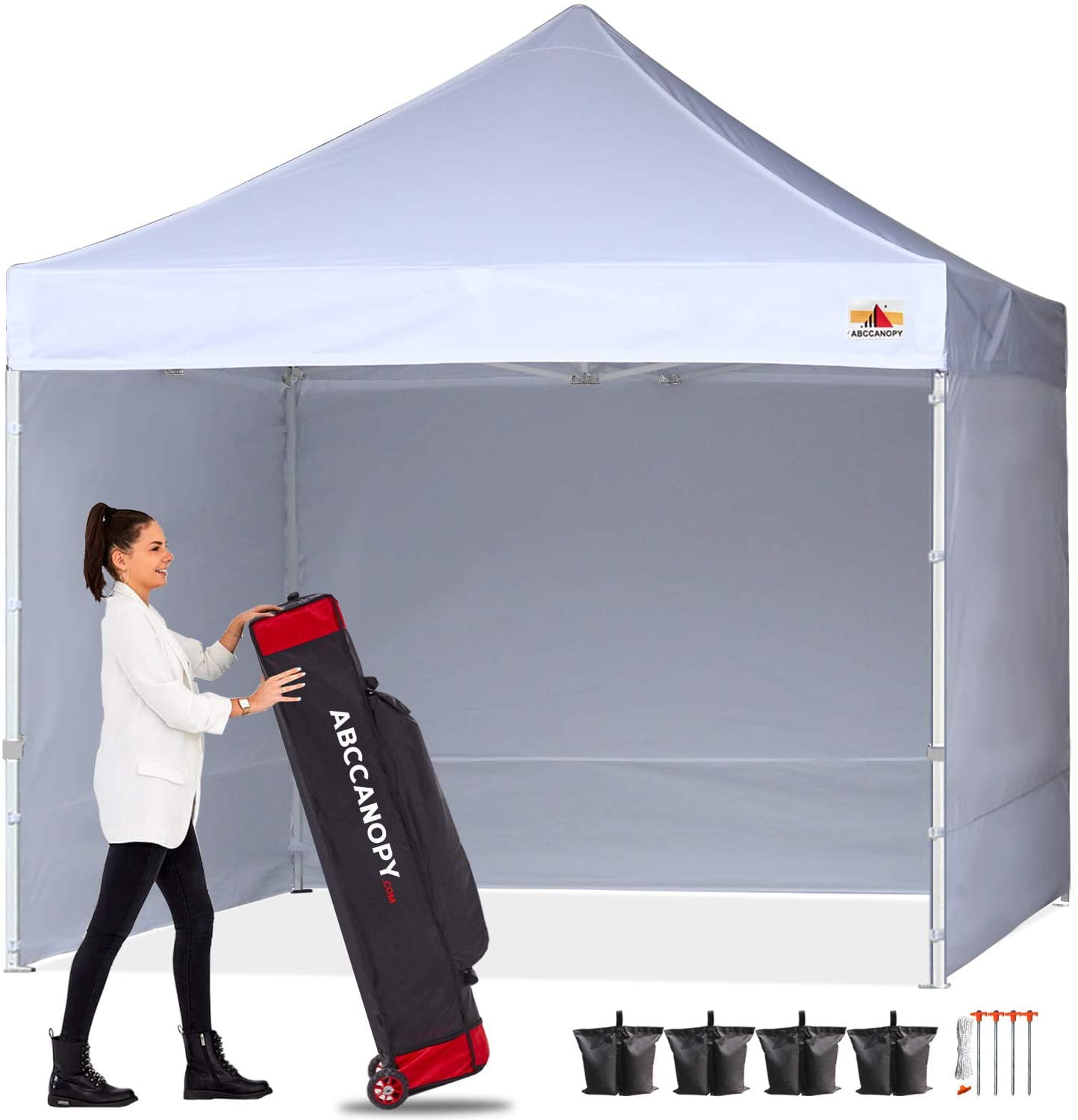The caravan 10 x 10 classic commercial grade canopy value package + 4 sidewalls with caravan 10' mesh foodwall pack (set of 4) would be an excellent choice. Uniquecanopy 10'x10' ez pop up canopy tent commercial instant shelter, with heavy duty roller bag, 10x10 ft red white strip. A 10x10 canopy tent is handy, very portable shade capability. Roller bag and universal rope and spike kit. Its perfect symmetry, lightweight, and stylish the 26x13mm curved truss bars and commercial steel feet ensure that the entire structure remains in place despite the number of visitors or bad weather.